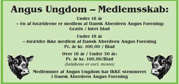 Kontingent for et Angus Ungdom-medlemskab: kr. 100 kr pr. år