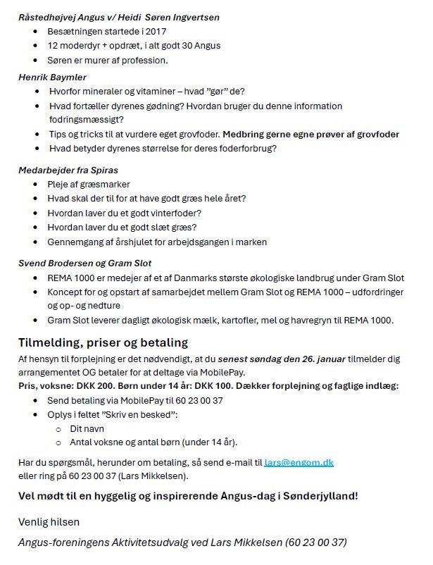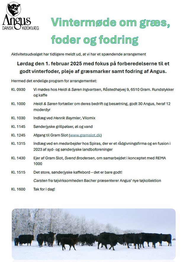 Kom med til et godt arrangement hvor der vil være fokus på forberedelser til godt vinterfoder, pleje af græsmarker, samt fodring af Angus.
